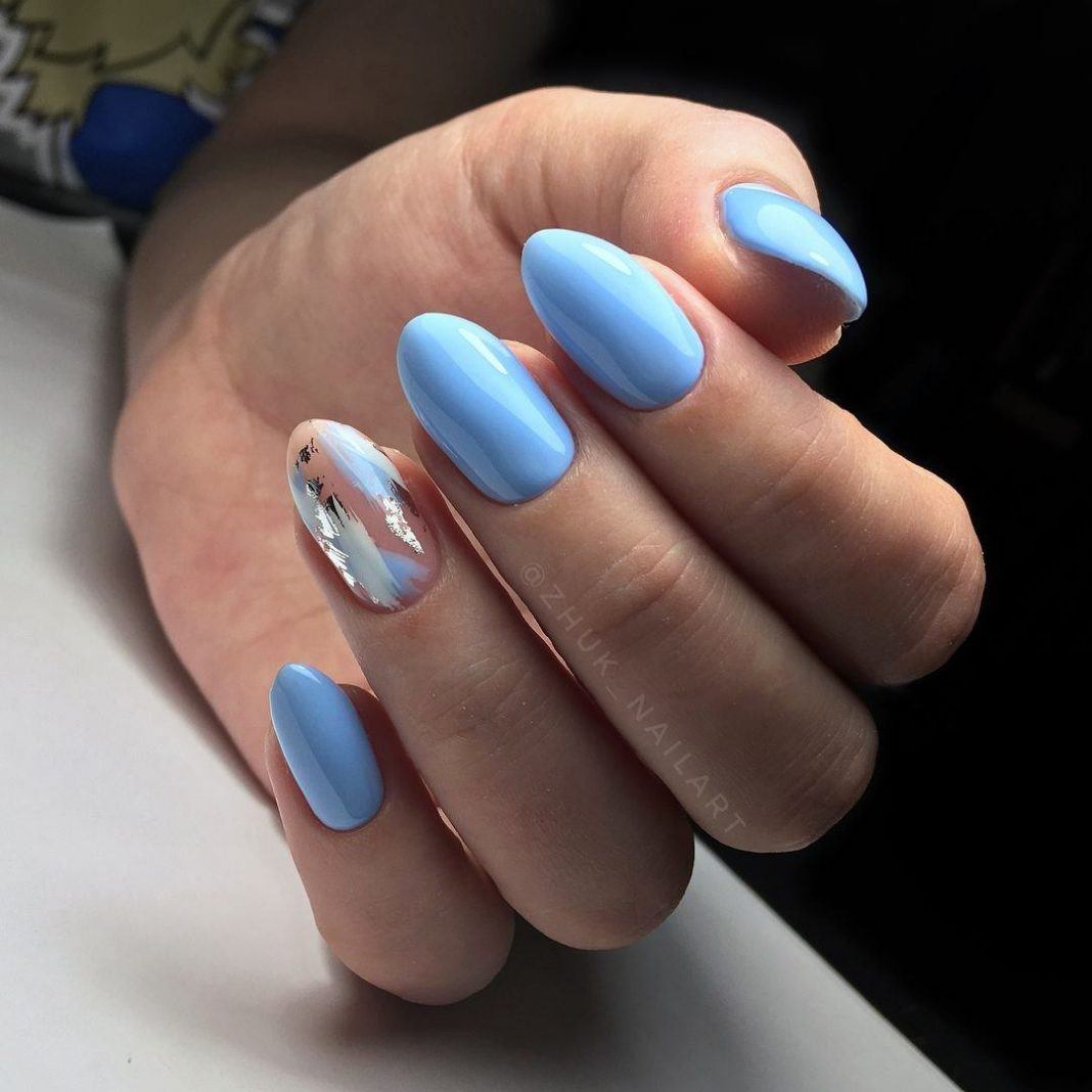 Голубой цвет в маникюре, а также в одежде, интерьере, окружающей природе всегда освежает, освещает дополнительным небесным светом, придает легкость, подчеркивает естественность, глубину, неимоверную привлекательность и природную красоту.