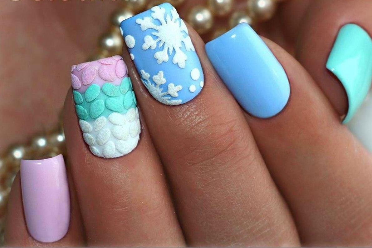 Это время года мы проводим в предвкушении Нового года и сопутствующих ему праздников. Зимние и рождественские мотивы — отличная идея украсить ногти и улучшить свое зимнее настроение. Хорошо смотрятся блестки и фольга, стразы и конфетти, наклейки в виде снежинок. Не скупитесь на фантазию, декорируя свои ноготочки. Кстати, их можно оформить в виде ёлочных игрушек.