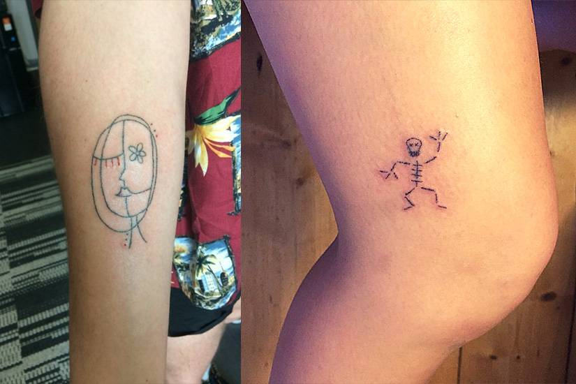 Первое что отличает хендпоук — эскизы. Они не требуют высоких художественных навыков. Первые тату в этом направлении набивались подростками или лицами в нетрезвом состоянии. Именно поэтому на рисунках вы не увидите сложных фигур. Они похожи на миниатюру, нарисованную на полях тетрадки.