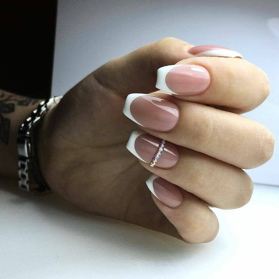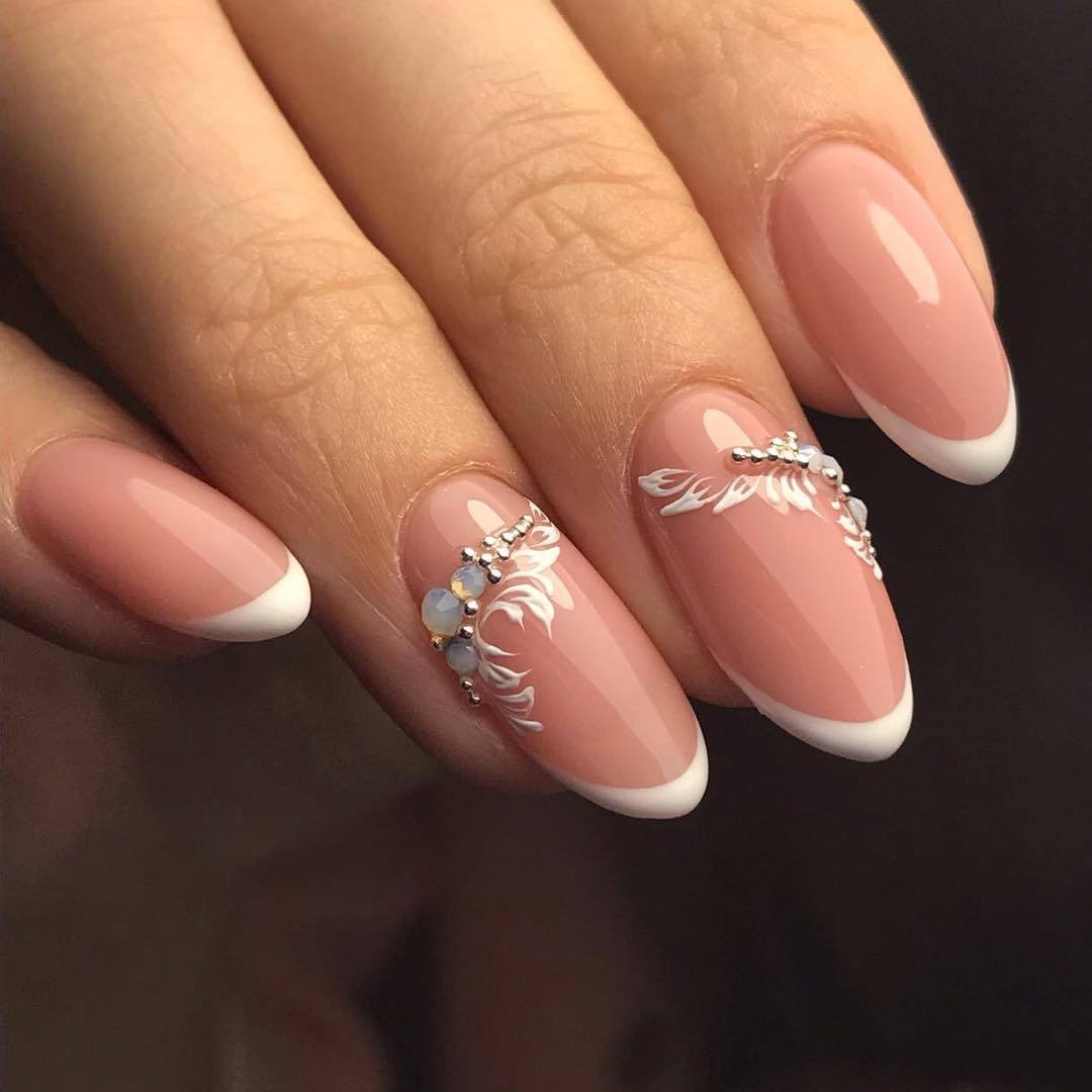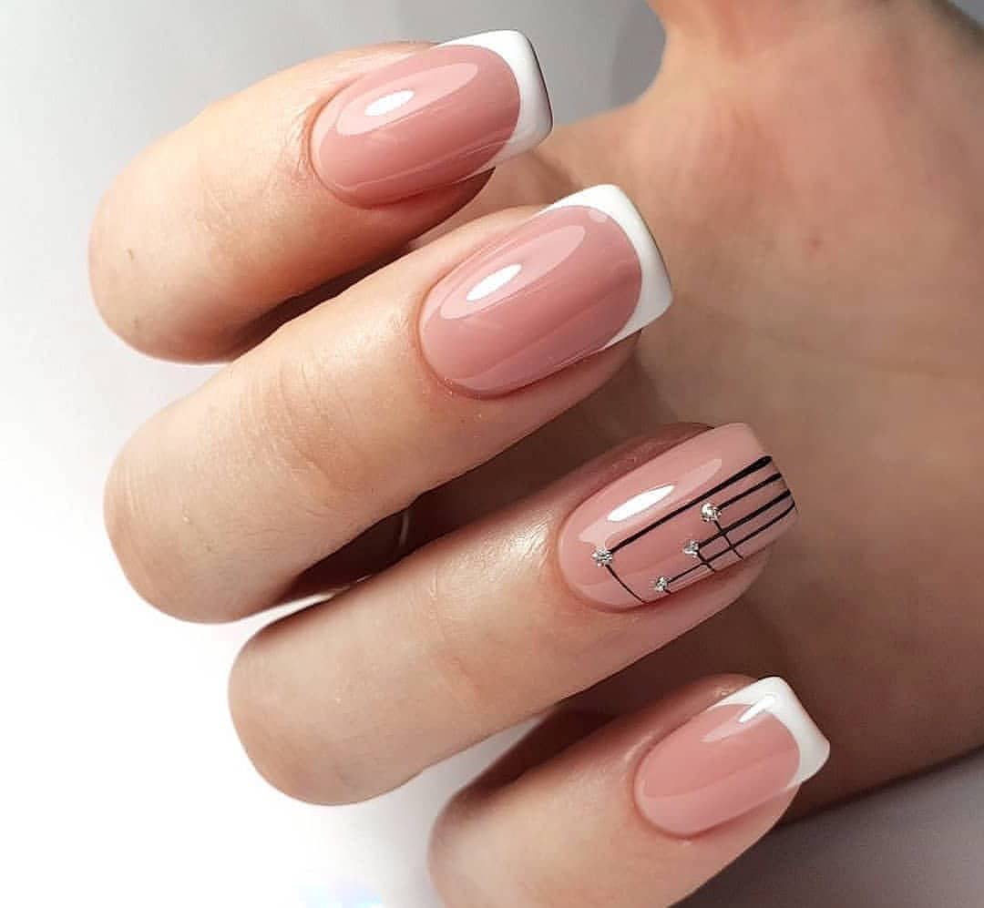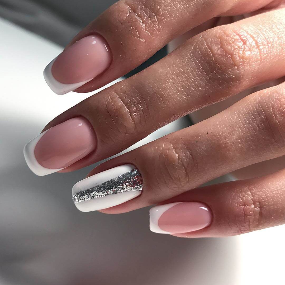 В данном случае французский маникюр для этого подходит идеально. При желании его можно украсить россыпью страз или же небольшим количеством блесток.