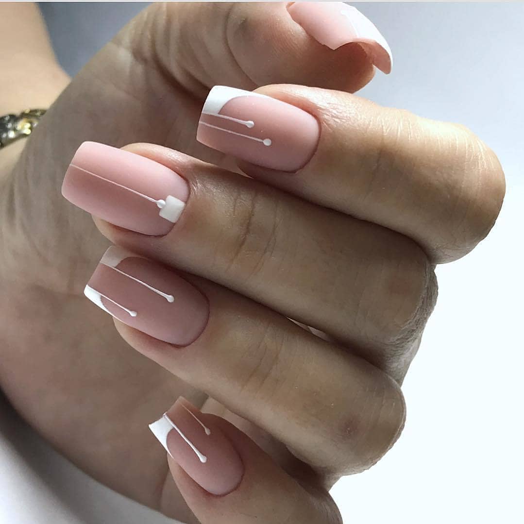 Создать красивый матовый французский маникюр или современный матовый лунный маникюр, вы можете дополнить матовые ногти узором или украсить их стразами и блестками.