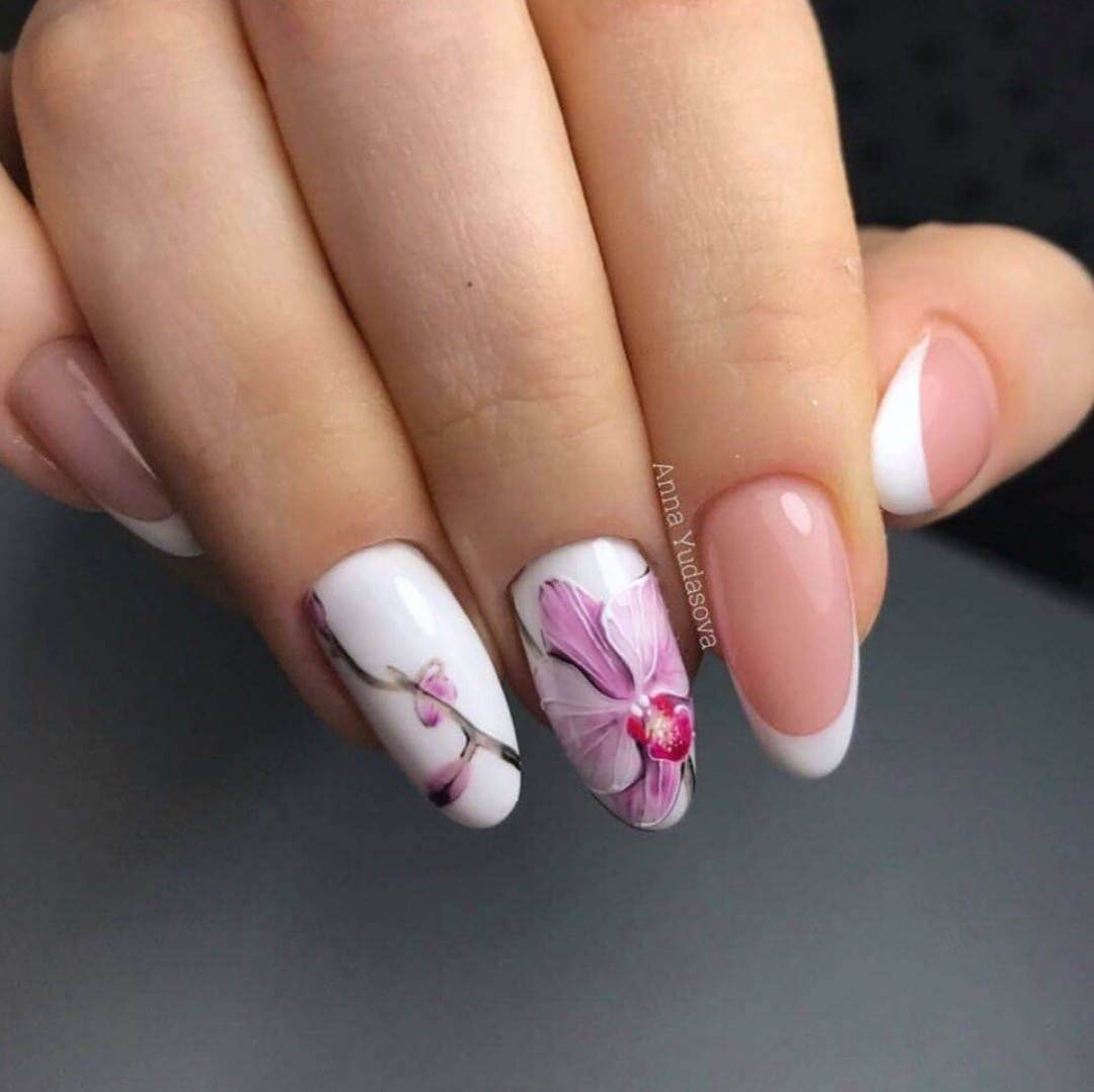 В первую очередь отметим, что флористический рисунок продолжает быть в моде. Это не только цветочки разных форм и размеров, но и крупные листья, которые нередко украшают ноготки в весенне-летнем сезоне. Отлично смотрятся флористические композиции, ведь многие из них больше напоминают произведения искусства. Те, кому по душе ненавязчивый, нейтральный маникюр, чаще выбирают для себя такой дизайн в стиле минимализм. Он выглядит не менее оригинально и уж точно не останется без внимания и комплиментов.