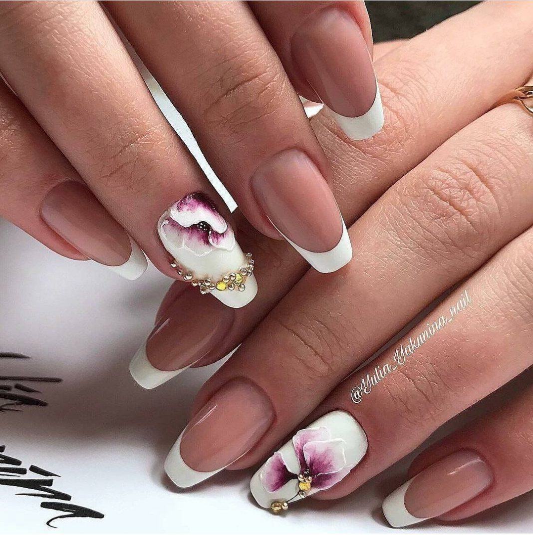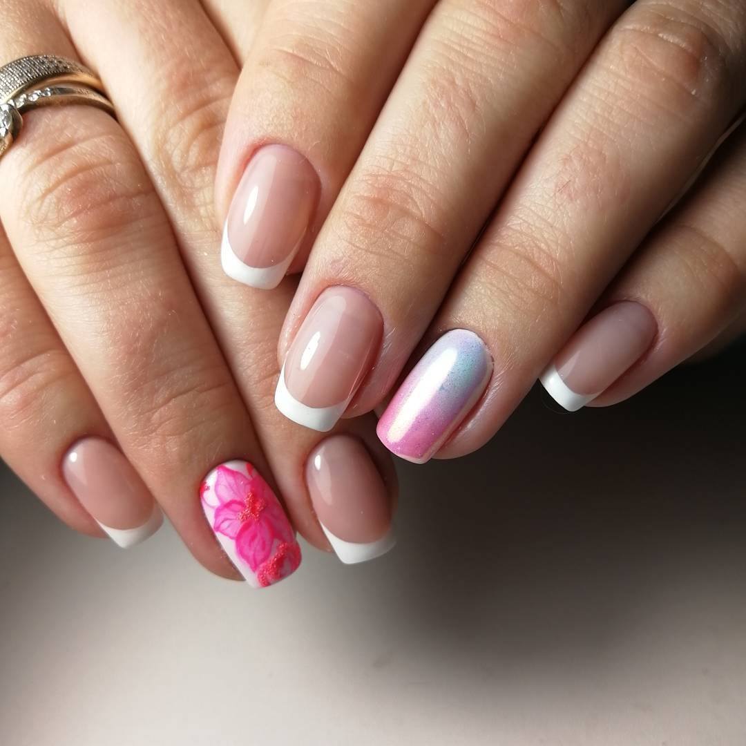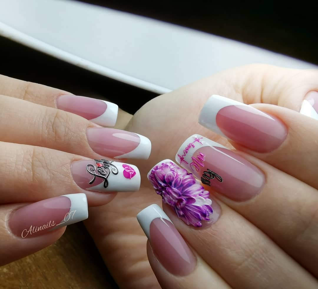 Современный французский маникюр практически никогда не обходится без дизайна или декора. Все чаще девушки украшают несколько ноготков оригинальными, интересными рисунками на разные тематики