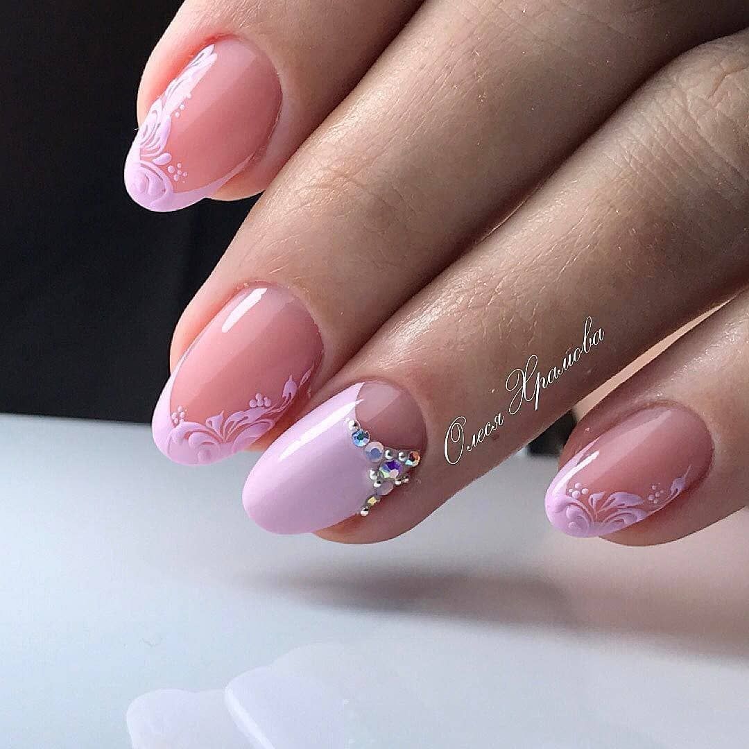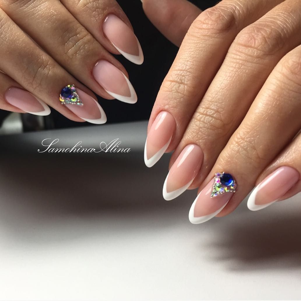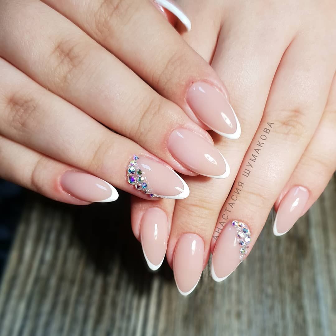 Нюдовый маникюр 2023 — 2024: идеи на миндалевидных ногтях