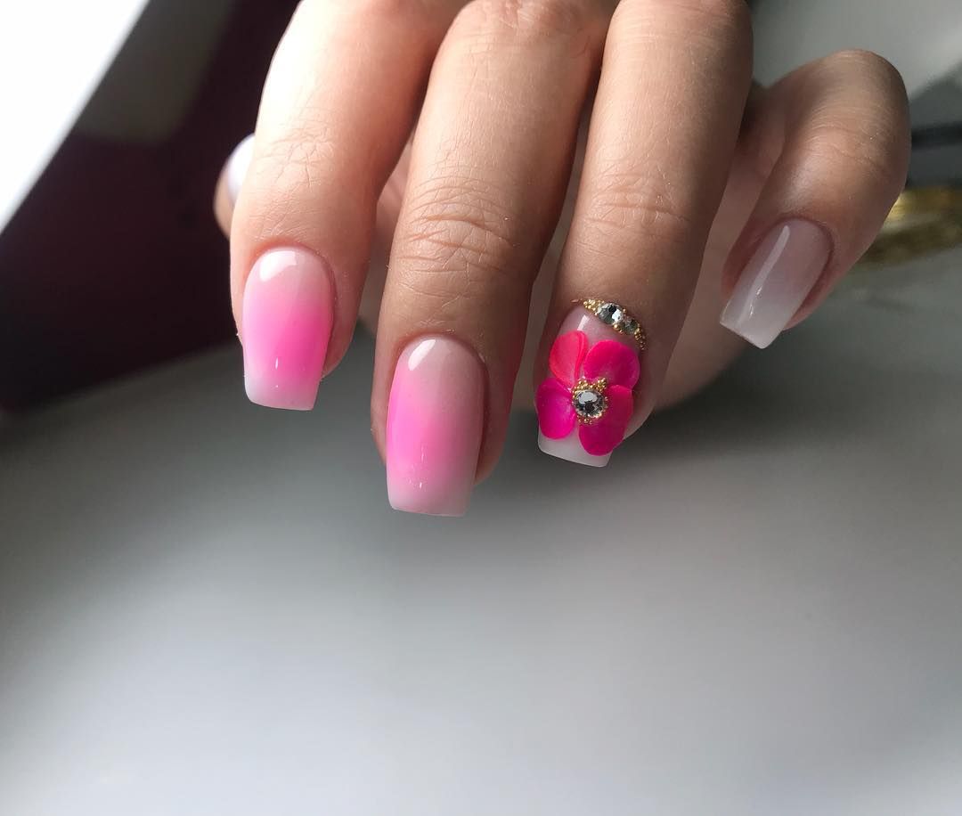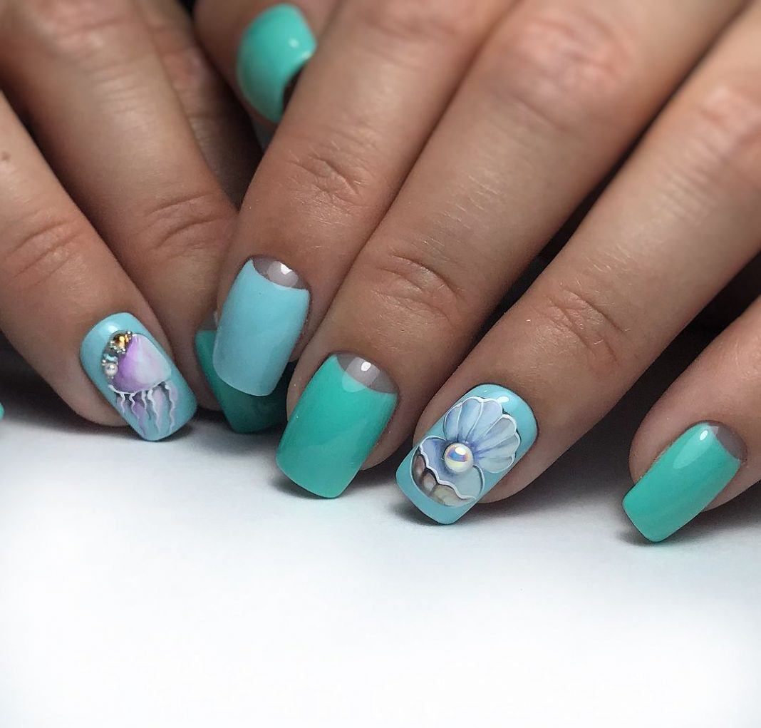 Рисунок не толь дополнит и без того красивый маникюр, но и сделает его неповторимым и свежим. Цветы, геометрические фигуры, животные и насекомые, надписи и многое другое внесут изюминку и разбавят основной цвет. Для выполнения рисунка можно использовать технику лепки, росписи, наклеивания картинки или дотс.