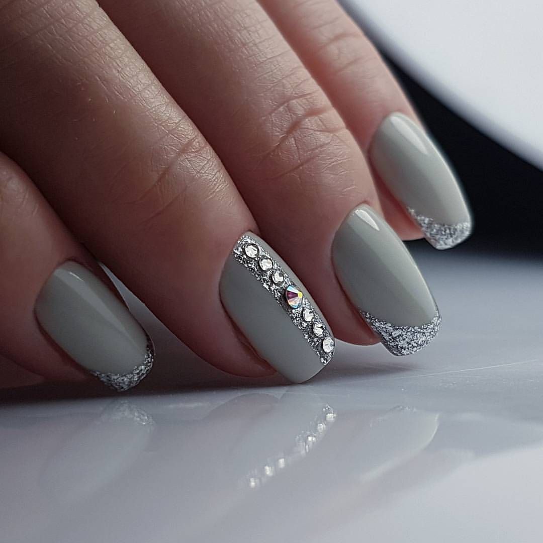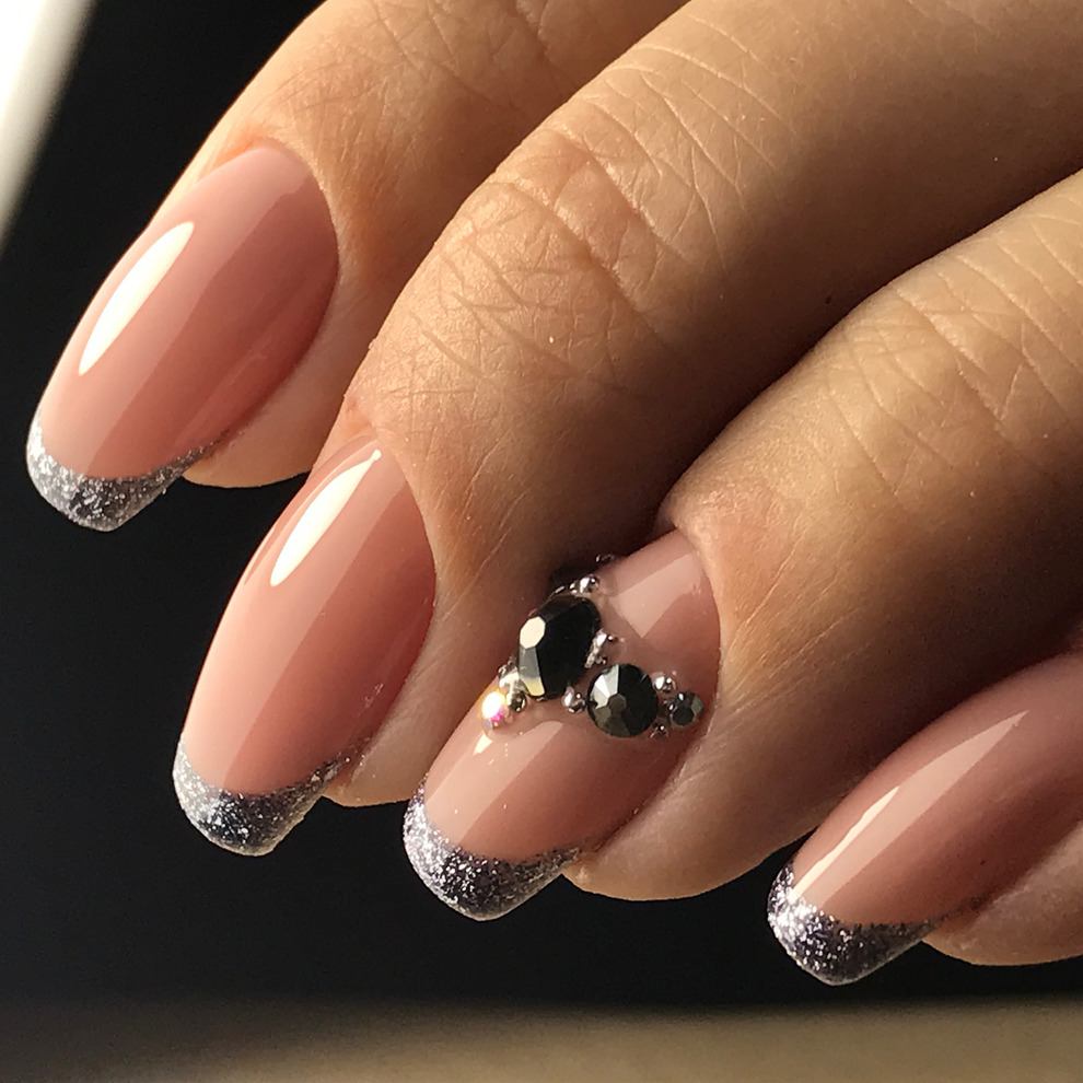 Для подчеркивания праздничного лука, идеально подойдет маникюр в стиле нюд с блестками и камушками. Выбирая такой вид украшения, помните, что все ноготки в стразах смотрятся не очень хорошо. Минимализм в этом деле будет намного уместнее.