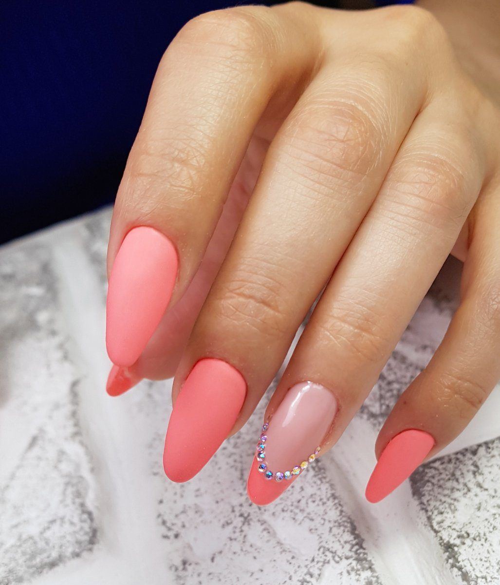 Миндалевидные ногти — это форма, когда у кутикулы они округлые, а к концу немного заостренные. Эта форма не только красива, но и удобна для выполнения на ней декора.
