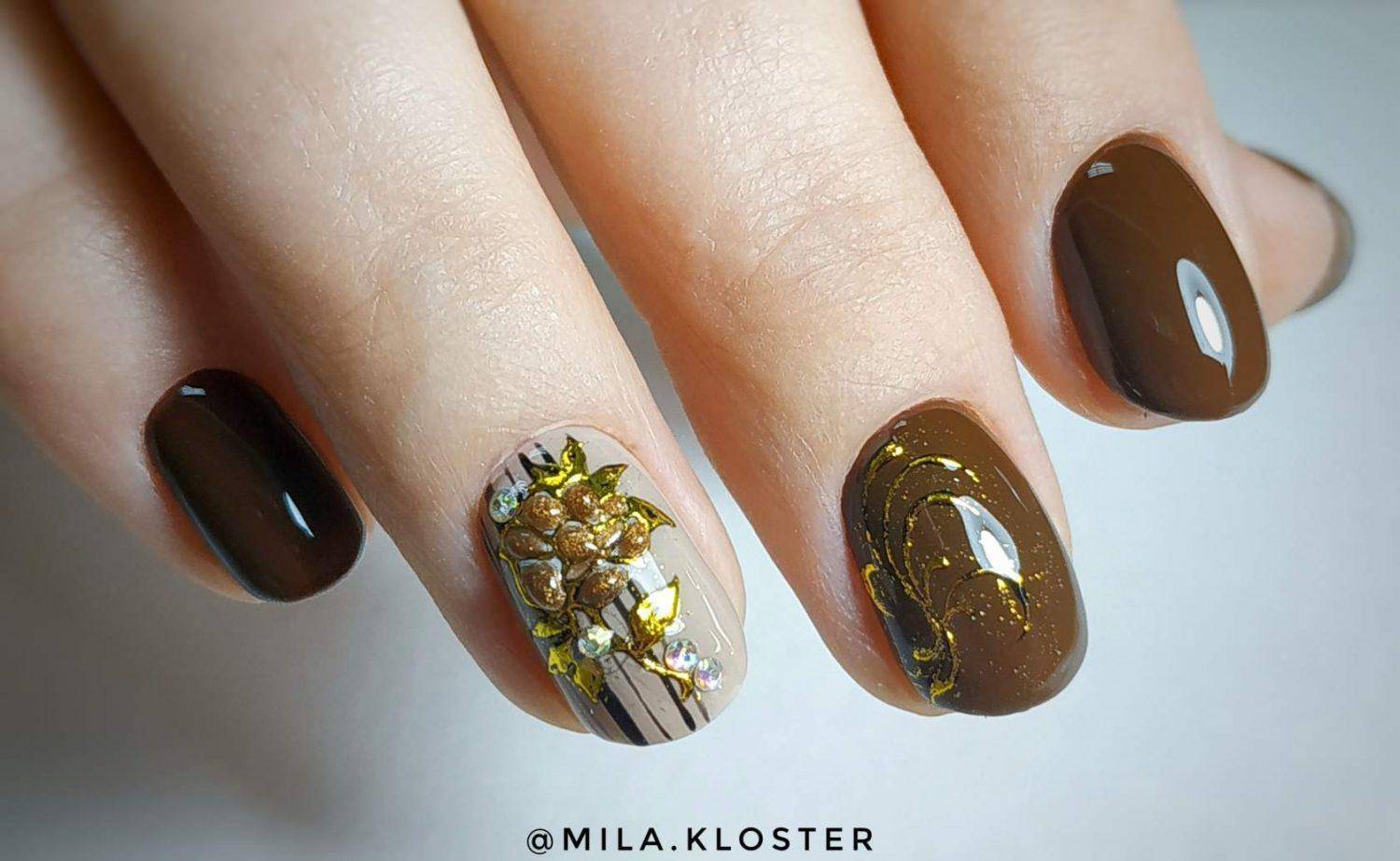 Тематический нейл-арт способствует естественной роскоши и требует применения гель-лака. Подходит преимущественно для средних и длинных ногтей миндалевидной или овальной формы.