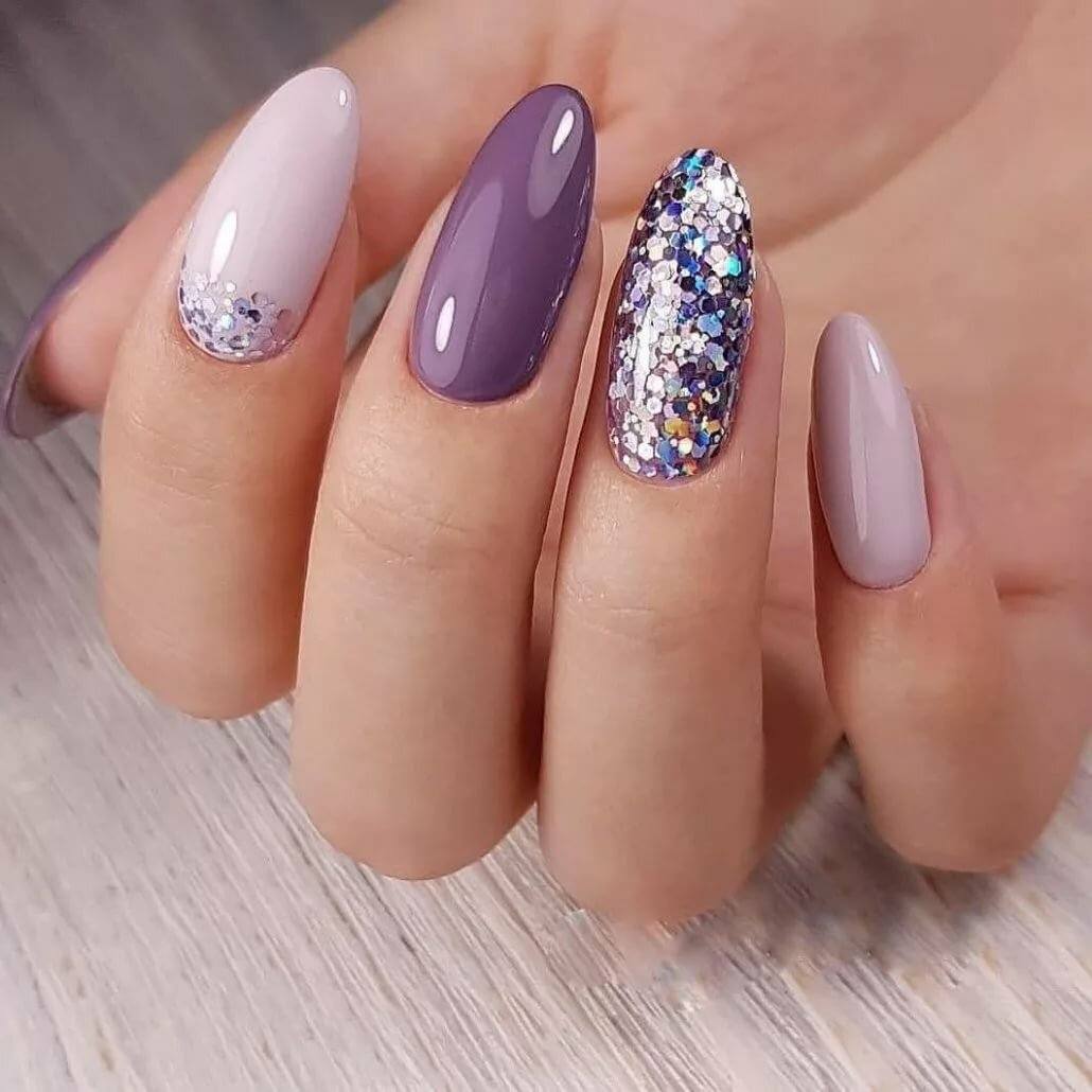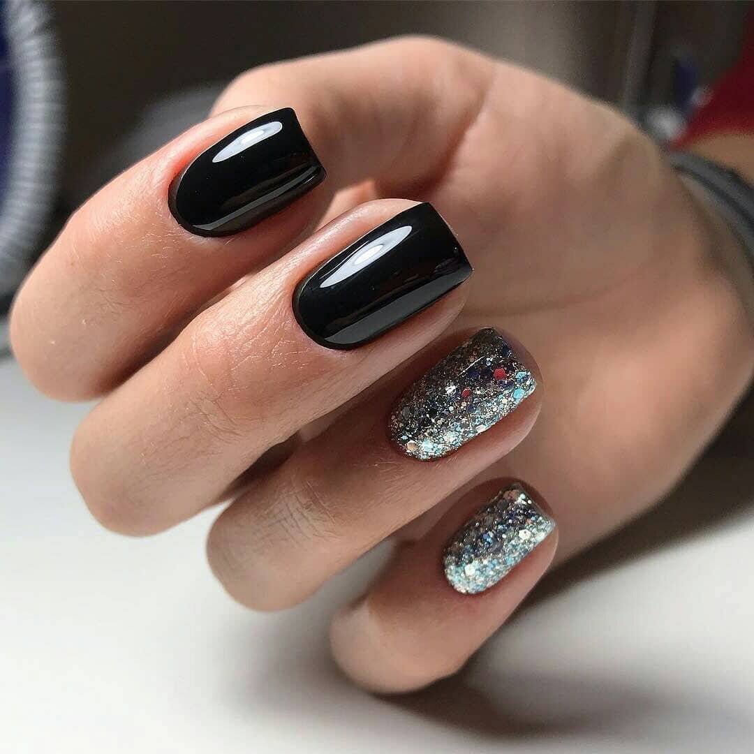 Однотонное покрытие с одиночным блестящим акцентом. Несложный и модный дизайн. Стильно и со вкусом.