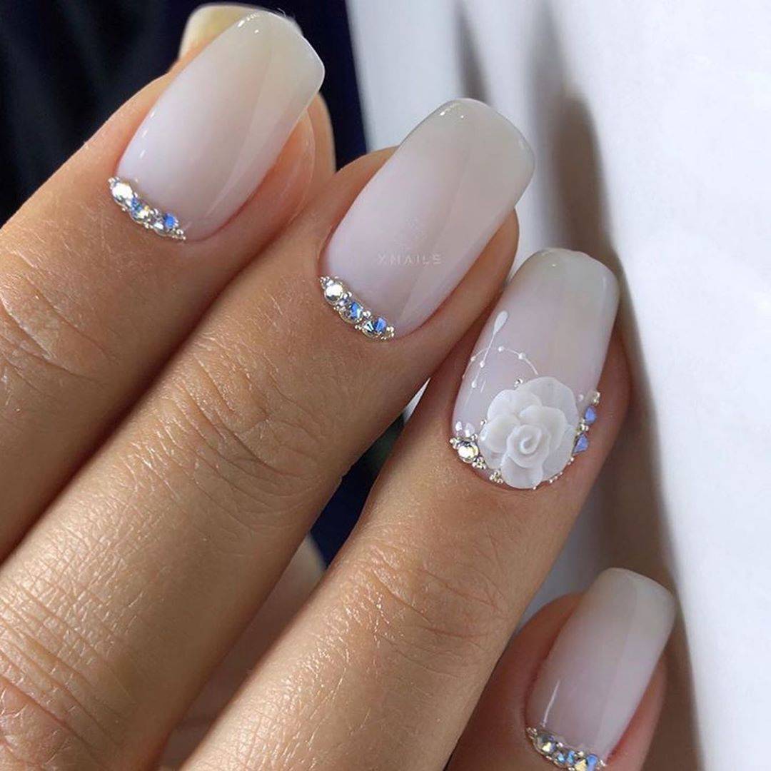 Крупные стразы сейчас теряют свою актуальность. Но в таком минимальном количестве, в качестве одиночного акцента, вполне достойно выглядят.