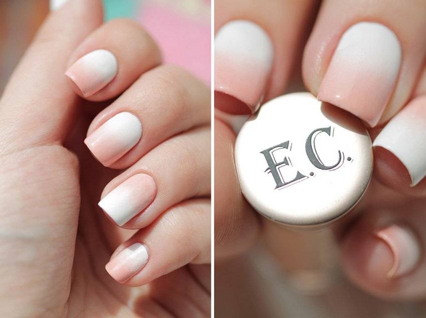 | Вариации на тему французского маникюра | По сути, вы выполняете тот же сдержанный френч в спокойной, бежево-белой гамме. Правда, вместо четкого прорисовывания линии улыбки, границу свободного края размываете на общий нюдовый фон |