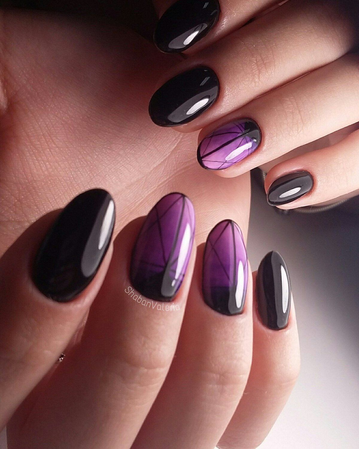 Этот дизайн получил популярность пару лет тому назад. Не все останавливают свой выбор на таком экстравагантном способе украшения ногтей. Однако Инста-ленты мастеров подтверждают: маникюр с чёрным градиентом становится востребованным.