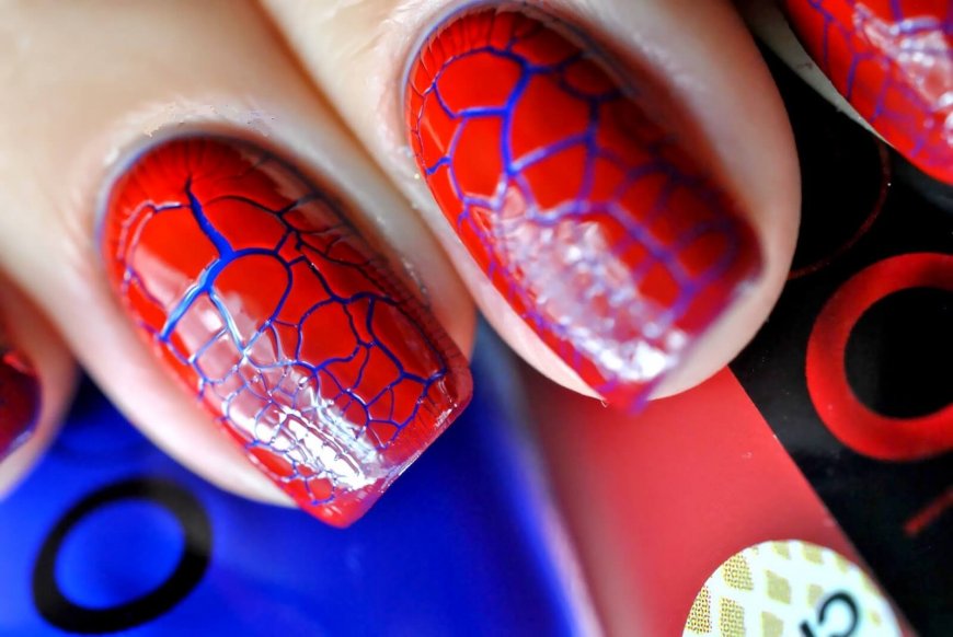 Дерзкий и яркий красно-синий маникюр — то, что нужно для смелых девушек. Игра текстур с акриловой пудрой или бархатным песком дает возможность немного приглушить цвет. Укрась ногти декором оттенка металлик, чтобы дополнительно подчеркнуть цветовую композицию