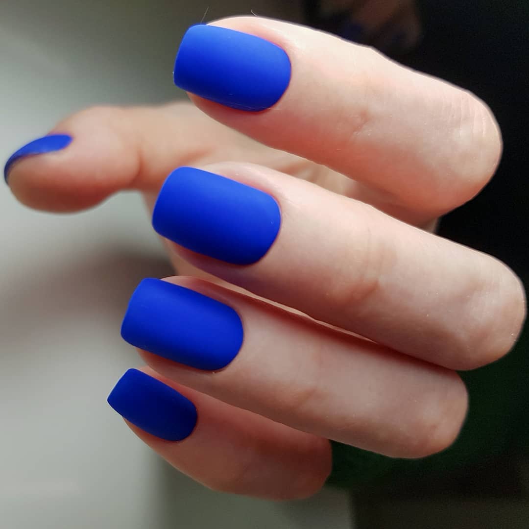 Зимой модницы выбирают основным холодный цвет — синий, сочетая его с черным, красным и белым. Чаще всего украшают зимний неоновый маникюр рисунками в виде снежинок, елочек. Но и в моно покрытии яркий синий лак тоже эффектный.