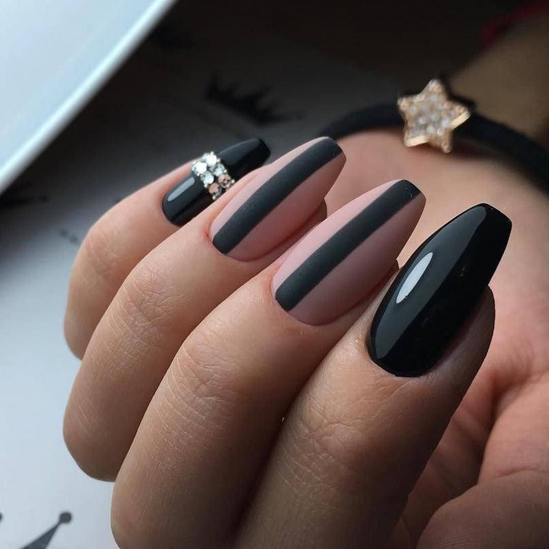 Сегодняшние тенденции диктуют многообразные варианты сногсшибательного черного маникюра на длинные ногти. Черный цвет на ногтях становится ещё более выразительным, когда покрытию придаётся матовый «финиш».