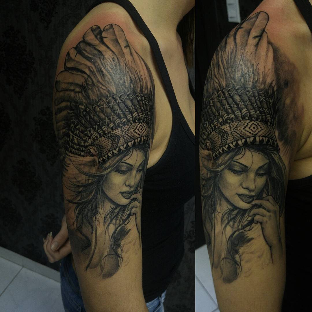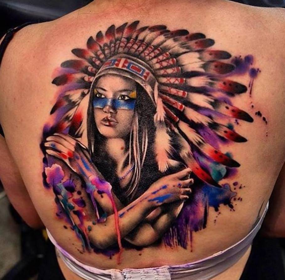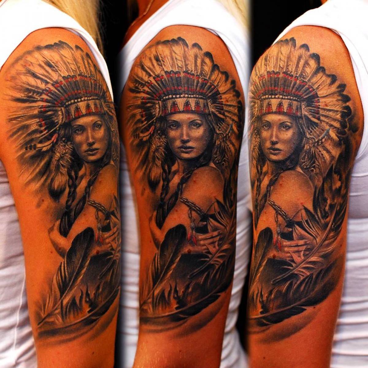 Тату с индейской девушкой раньше являлась знаком того, что девушка хочет заручиться поддержкой древних духов в любовных вопросах. Согласно обычаю, духи оберегают девушку от бесчестных и подлых молодых людей, защищая ее честь и благородство. Данная идея имеет актуальность и в наши дни, но чаще всего тату такого типа создается для красоты.