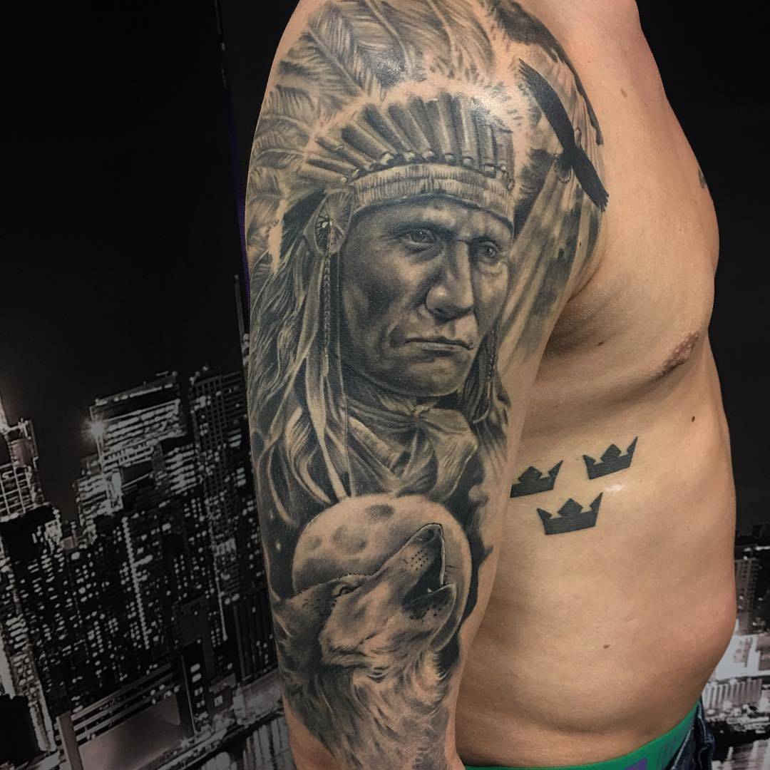 В США многие заинтересованы в подобных татуировках, так как у многих далекие родственники был индейцами. Такие люди изучают глубоко свою родословную, культуру, обычаи и только после этого набивают тату с индейцами.