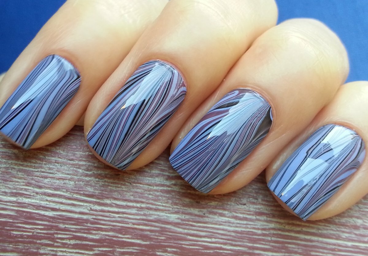 Распределите несколько капель цветного лака и, не дожидаясь высыхания, используйте