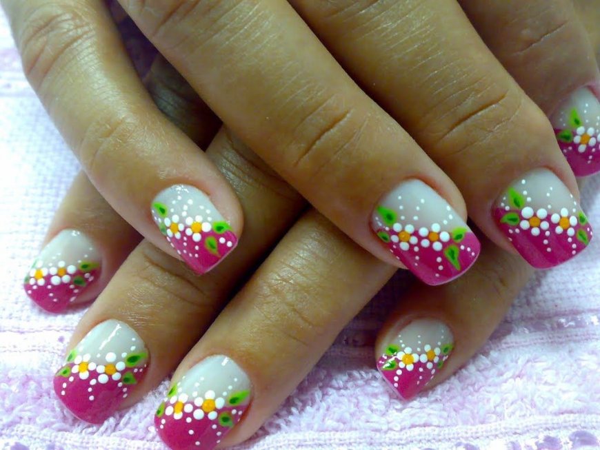 Впрочем, оттенки на разных ногтях могут быть и совершенно разными. Один из примеров – разрисуйте ногти красным, персиковым, голубым, синим и зеленым лаками, а затем украсьте каждый из них сверху белыми точками.