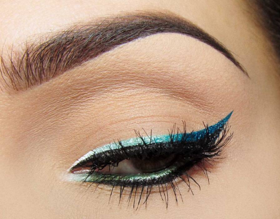 Чтобы сделать цветную подводку глаз не обязательно бежать в магазин и покупать синюю, зеленую или коричневую подводку. Для того чтобы получить цветную подводку для глаз, можно воспользоваться обычной черной подводкой и цветными тенями.
