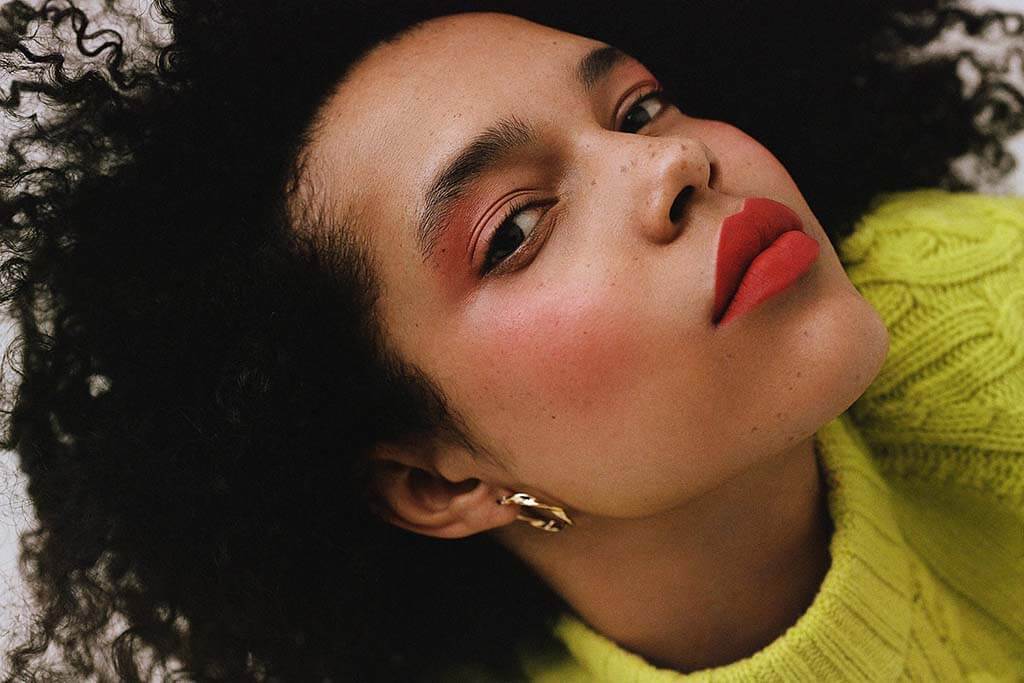 - На скулы нанести румяна, а на губы натуральный сочный бальзам.