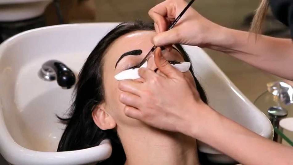 - Чтобы случайно не окрасить кожу около брови, необходимо нанести жирный крем.