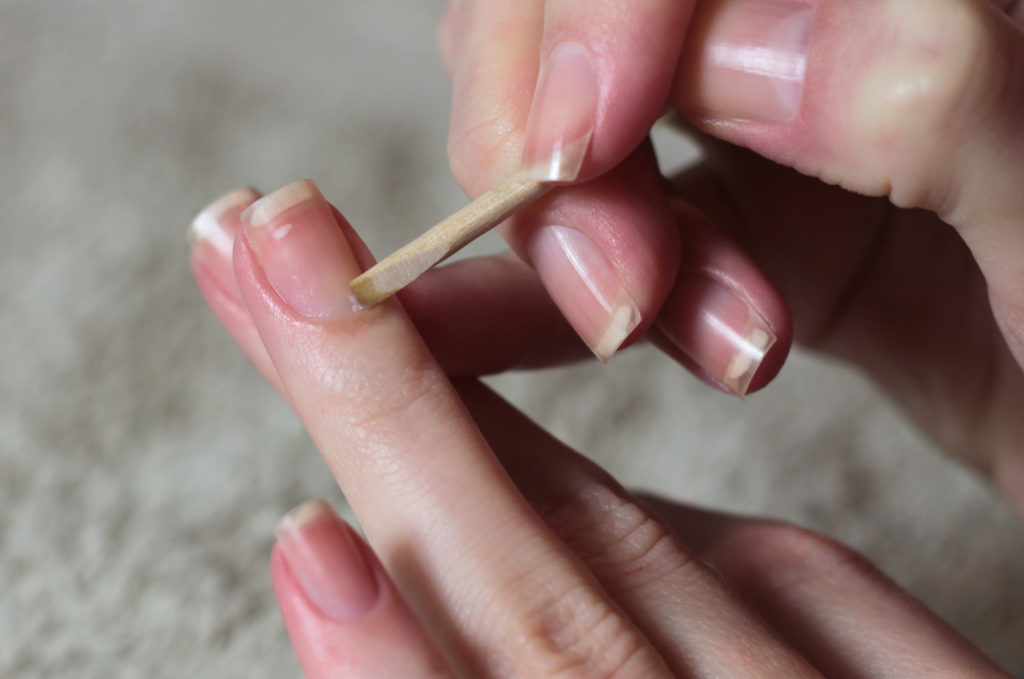 Теперь пришло время слегка приподнять и отделить кутикулу, одновременно отодвинув ее. Воспользуйтесь для этого