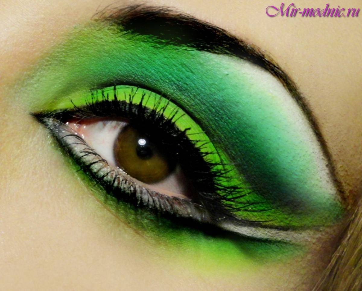 Помимо вышеперечисленных теней, разрешены и зеленые. В качестве подводки использовать лайнер или карандаш такого же оттенка. Причем при помощи первого можно быстро и ровно провести тоненькую линию. В направлении от внутреннего уголка глаза к внешнему, с небольшим поднятием кверху.
