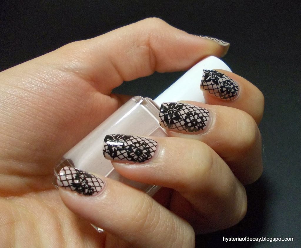 Это самый простой и быстрый и метод создания кружевного маникюра. Выполнить его можно 2 вариантами: