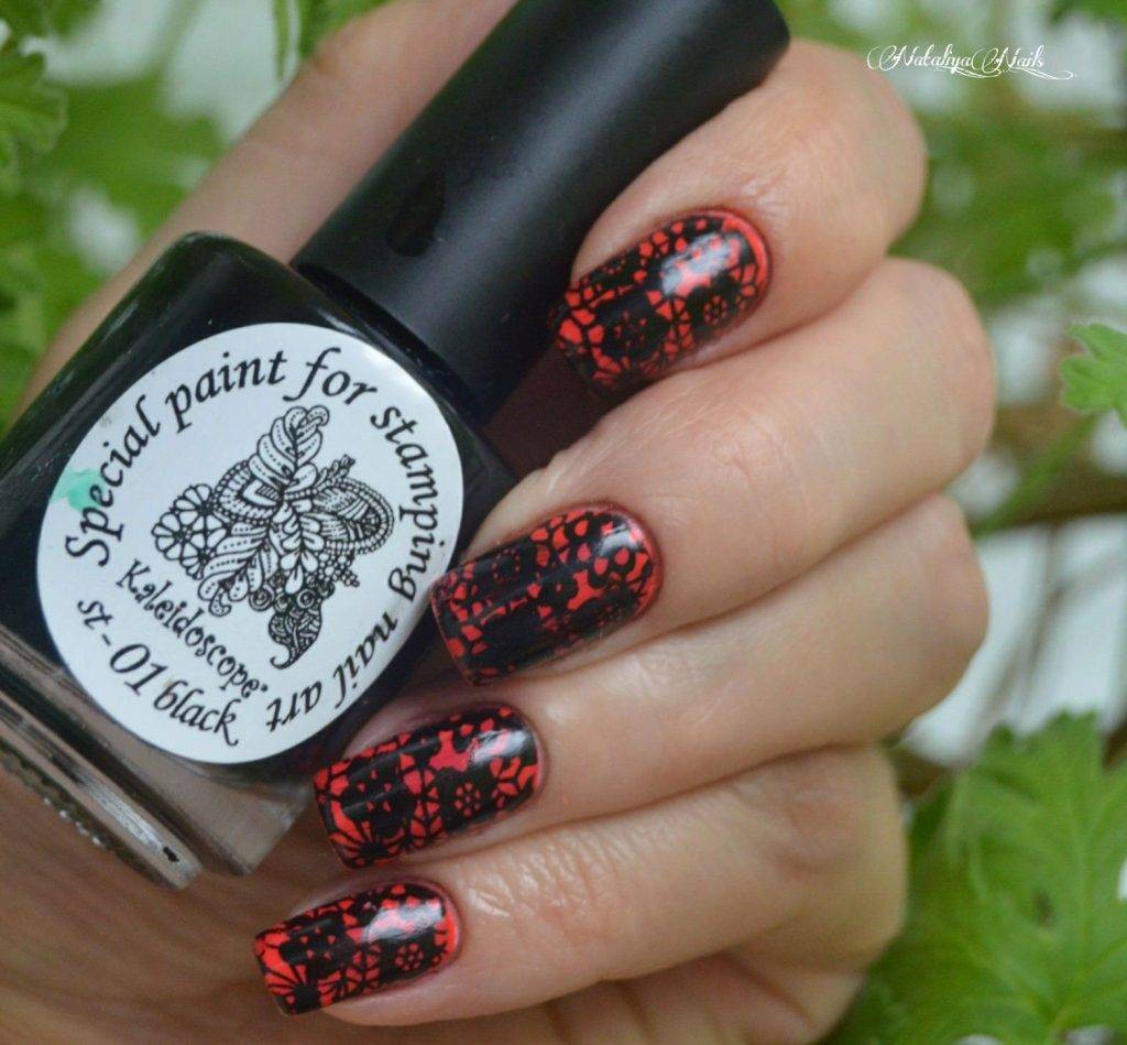 Стемпинг. Недавно появившийся, поэтому очень популярный способ нанесения рисунков на ногти. Кружева наносятся на ноготь техникой отпечатывания, поэтому понадобится специальный трафарет и штамп. Трафаретов для такой техники много, поэтому найти понравившийся будет несложно. Преимущества такого метода в том, что он подойдет неопытным девушкам, справиться с ним сможет каждая.
