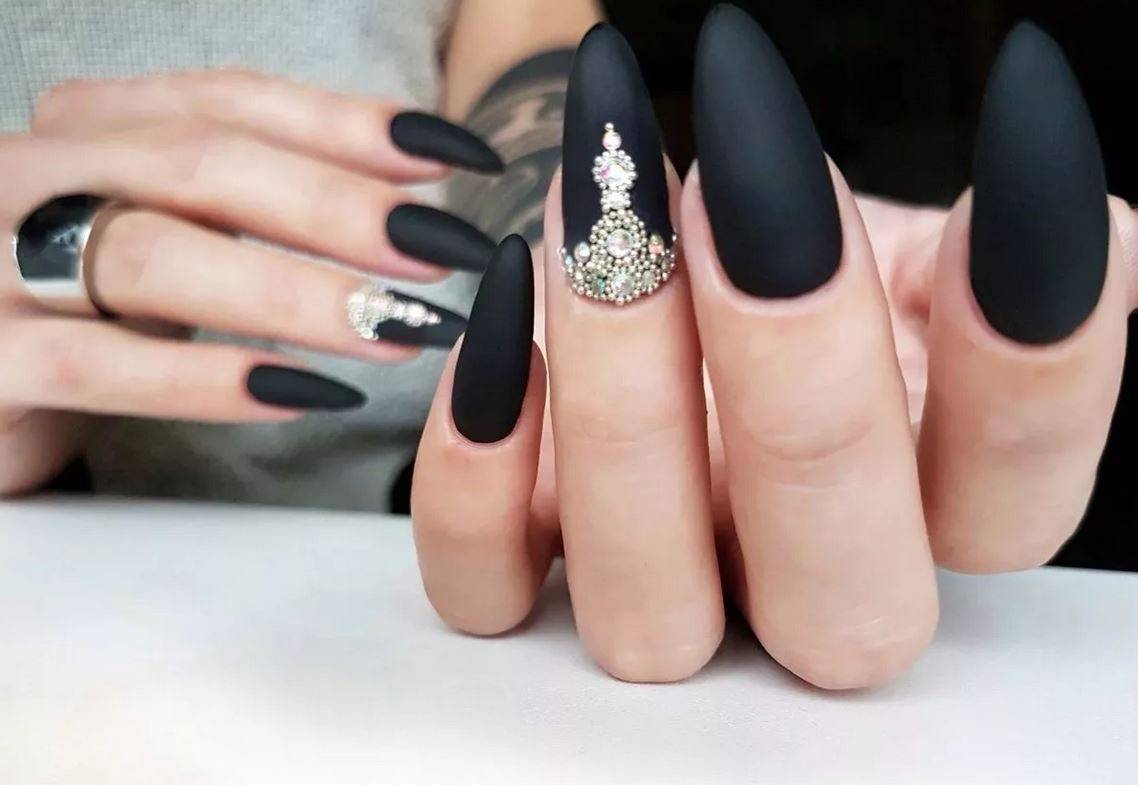 Матовый маникюр следует делать специальными матовыми гель-лаками. Они продаются во всех торговых точках и имеют большую палитру разных оттенков. Наиболее популярным сейчас является черное матовое покрытие.