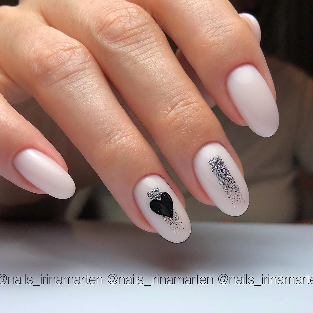 Молочный оттенок не так прост, как может показаться сначала. Это тот цвет, который может меняться в зависимости от освещения. Такую необычную особенность мастера нейл-дизайна отлично обыгрывают серебряными и золотыми нотками. Превосходный пример такой идеи – молочный френч с золотой фольгой. Этот маникюр универсален, подойдёт как к вашему деловому костюму, так и к праздничному платью.