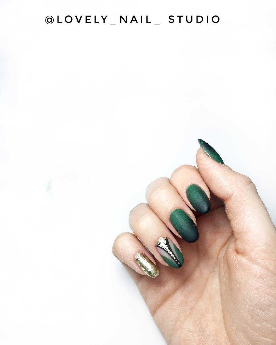 - Бутылочно-зеленый смотрится модно на одежде и ногтях, выглядит свежо и очень стильно. Он не выходит из моды вот уже несколько сезонов.