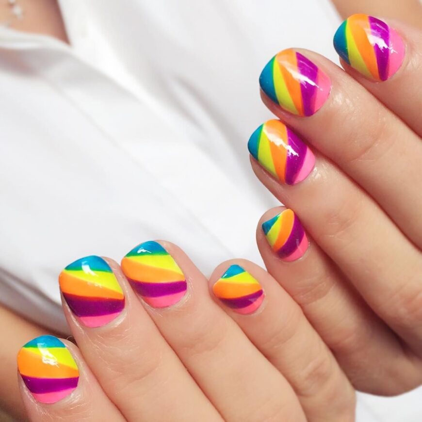 Полоски, линии, зигзаги – это одни из самых простых рисунков на ногтях в домашних условиях. При аккуратном выполнении тонкие ровные или волнообразные линии выглядят очень оригинально. Наносить их можно контрастными цветами