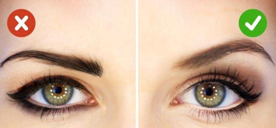 А вот верхнюю линию бровей лучше растушевать, избегая четких очертаний.