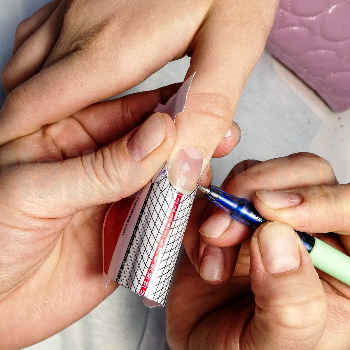 Трудности возникают из-за того, что шаблоны имеют универсальную прорезь под палец, полукруглую и определенной ширины. В то время как линия улыбки, ее глубина и положение точек вроста могут варьироваться от пальца к пальцу. На одном пальце не хватит глубины прорези для того, чтобы шаблон вошел в точки вроста. На другом — наоборот, точки вроста он перекроет, но по центру ногтя будет отставать. Кроме того, боковые валики будут мешать шаблону свернуться в арку, из-за чего он не сможет свернуться под ноготок. Если этим пренебречь, то искусственные ногти будут получаться плоскими и ломкими, так как без арки они теряют возможность амортизировать нагрузки.