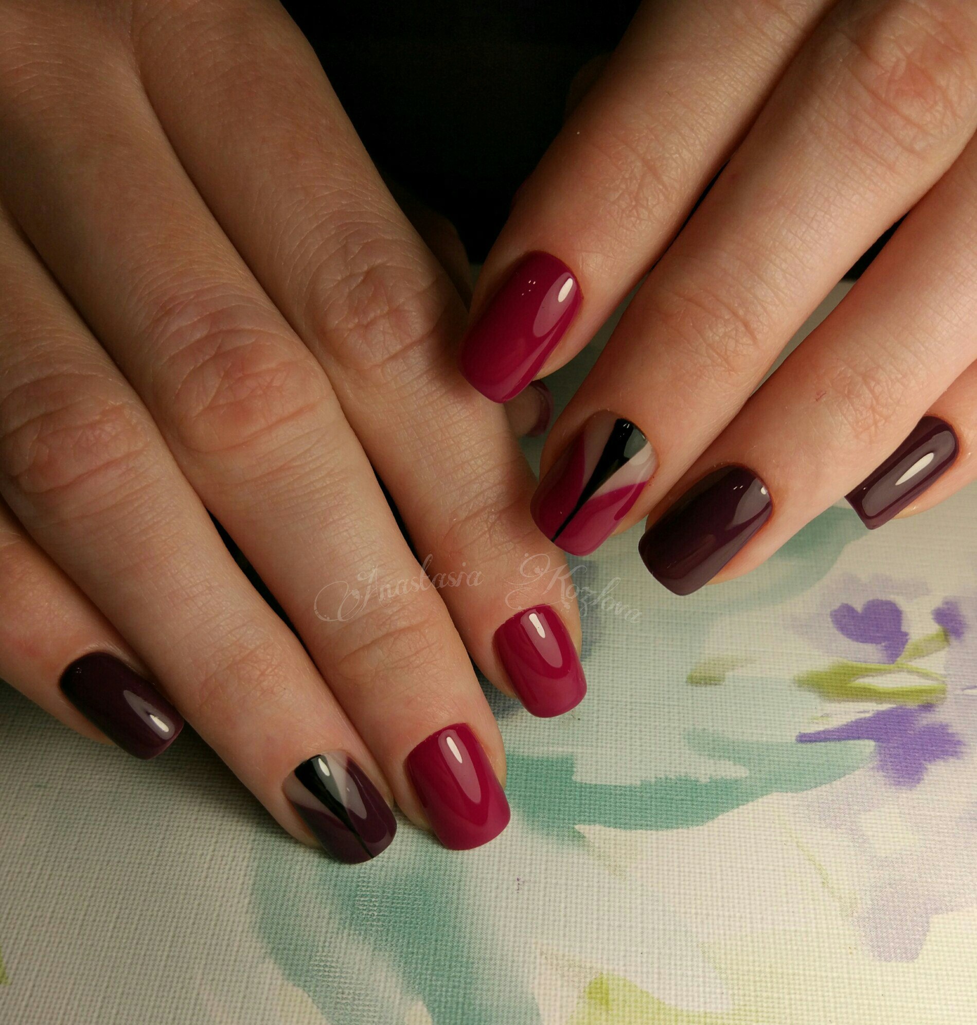 Цветовая гамма в приделах черного, станет идеальным вариантом для обладательниц коротких ноготков. Именно на такой форме, темные цвета смотрятся гармоничнее всего, предавая дамскому образу элегантности и страстность.