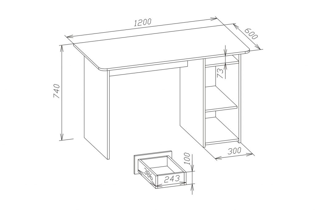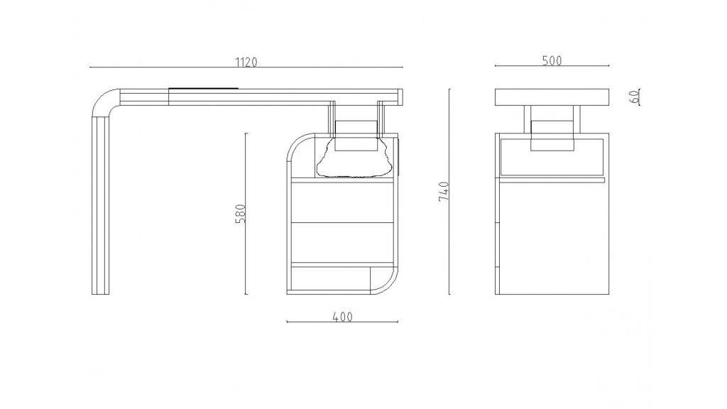 Столы могут иметь стандартную форму, включать в себя небольшую тумбу для хранения принадлежностей. Складная либо откидная столешница дополняется стеллажами, подставками и полками. Грамотно составленные чертежи состоят не только из необходимых размеров, обязательно указывается местоположение отверстий для встроенного оборудования.