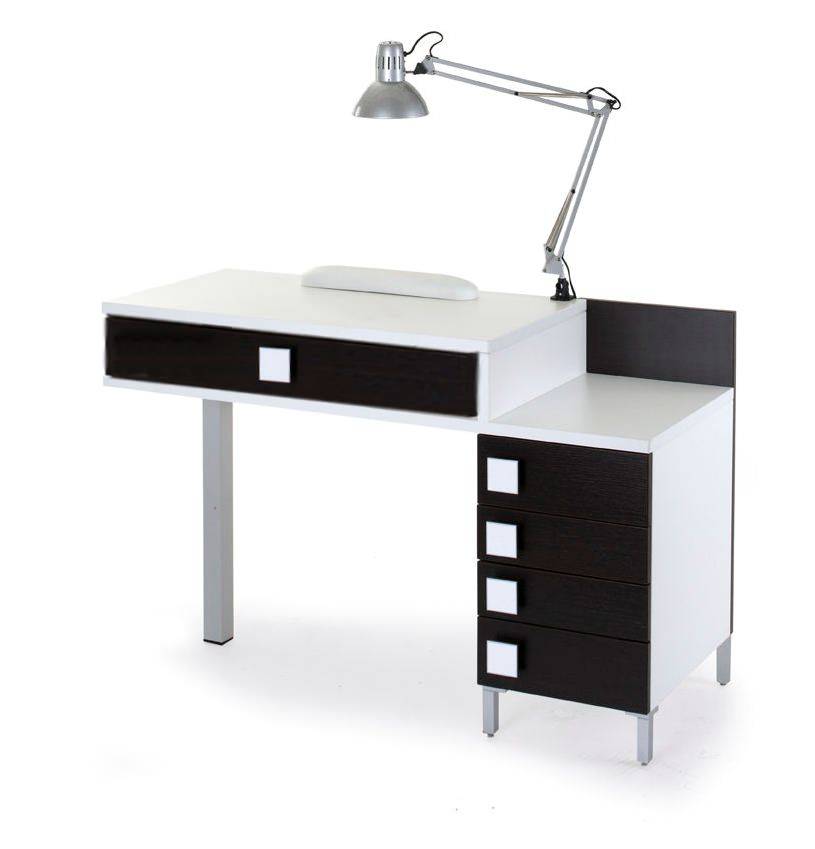 Изделия с подвесными ящиками позволяют разместить большое количество принадлежностей и ухаживающих средств. Столы с вытяжкой помогают поддерживать рабочее место в чистоте. Ведь в результате снятия старого покрытия с ногтей аппаратом неизбежно образуется пыль, которая будет всасываться специальным пылесосом.