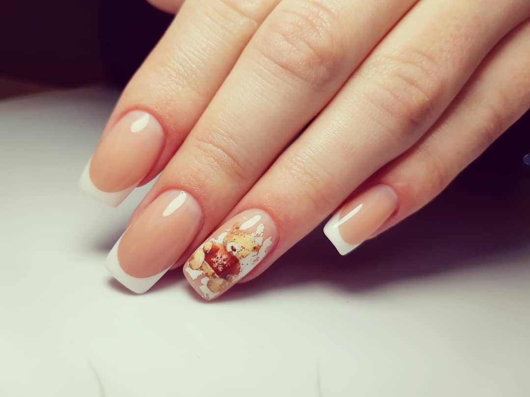 Из техник прекрасно подойдут френч и Лунный маникюр. Они сделают более округлой квадратную форму ноготков и придадут ручкам элегантный вид.