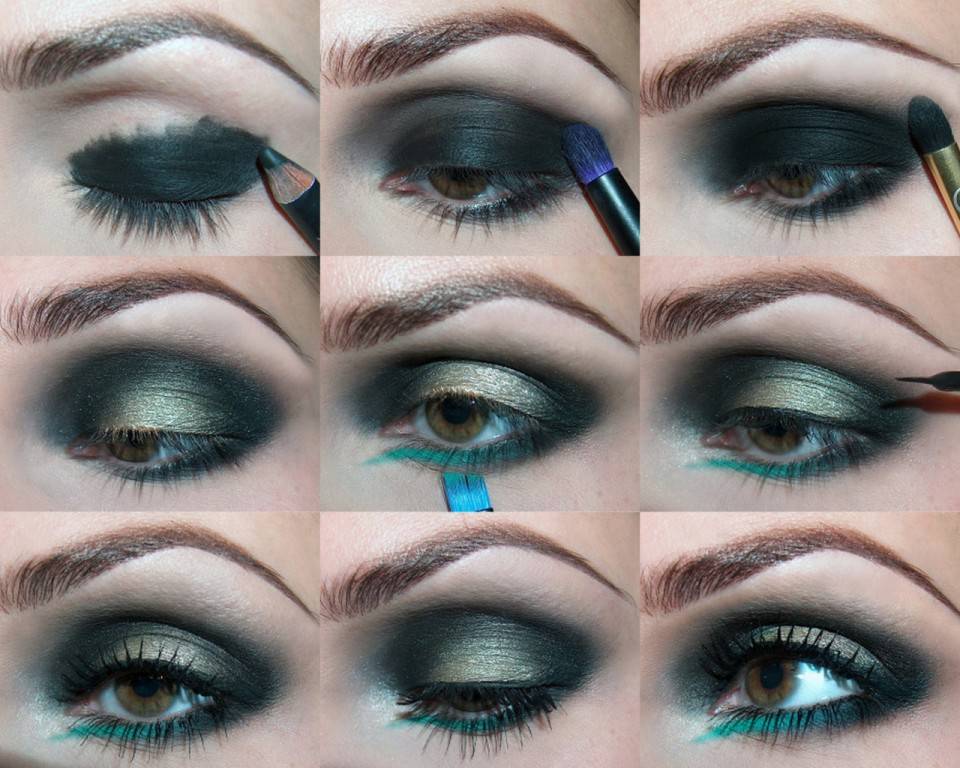 Никаких сложностей нет в создании вечернего образа для кареглазых красоток. На фото ниже, четко видно каждый из описанных этапов создания мейкапа.