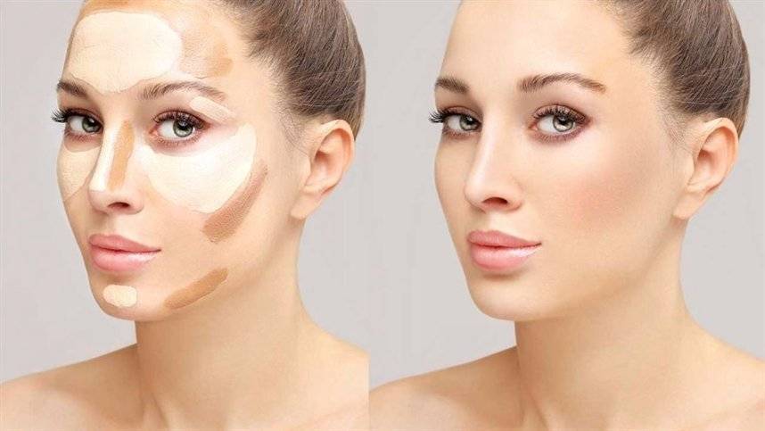 - Нанесения основного тона. Визажисты рекомендуют использовать два оттенка, которые позволят сделать правильное контурирование лица.