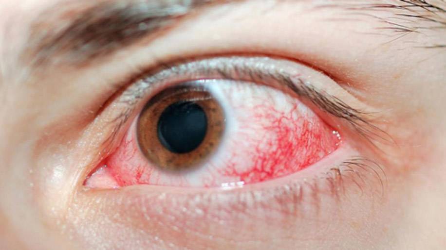 Глаза становятся красными.