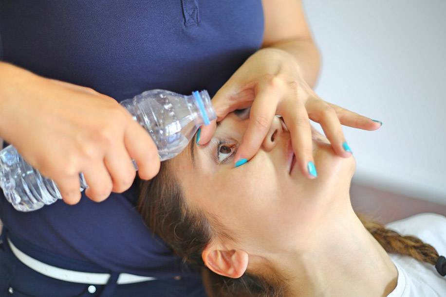 Если произошла ожоговая травма глаза, надо как можно быстрее оказать пострадавшему первую помощь. При любом ожоге показано длительное промывание глаза прохладной чистой водой. Таким образом можно смыть с поверхности глазного яблока химическое вещество, вызвавшее ожог, и охладить место травмы.
