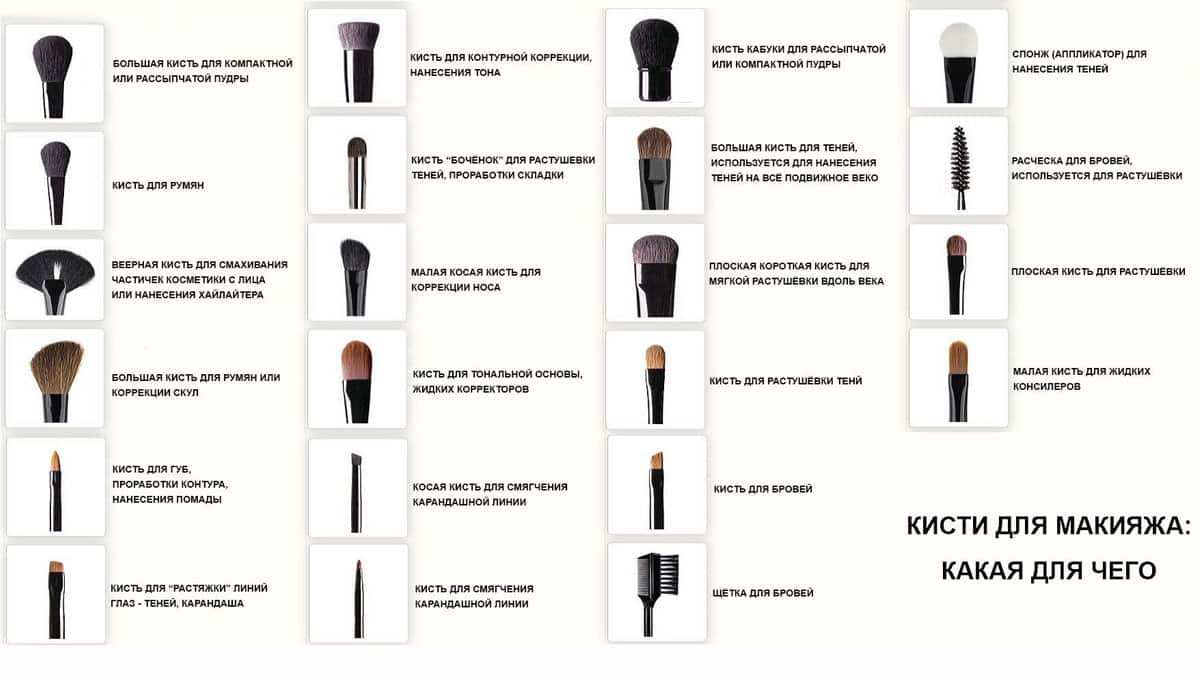 Все профессиональные кисти для макияжа классифицируются по области использования.