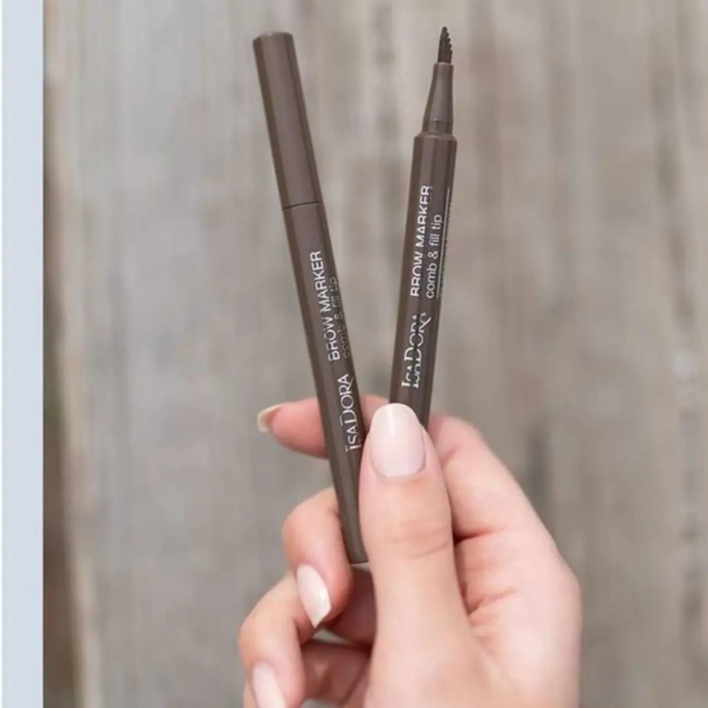 IsaDora Brow Marker имеет не типичный наконечник — смесь скошенного пера и зубщиков, при этом материад — фетр.