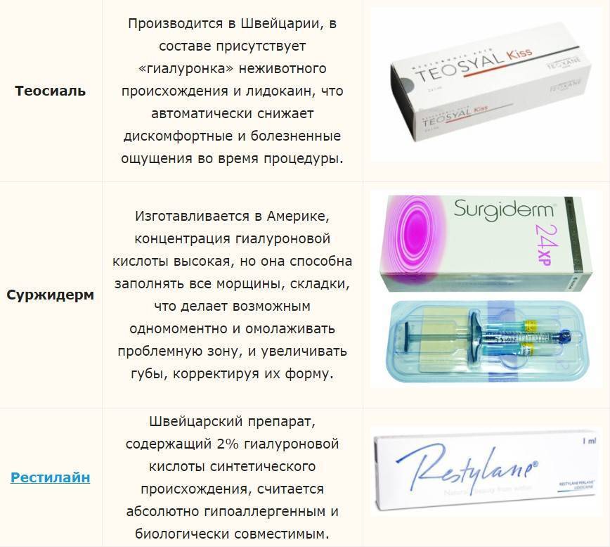 Наиболее известные препараты для контурной пластики губ