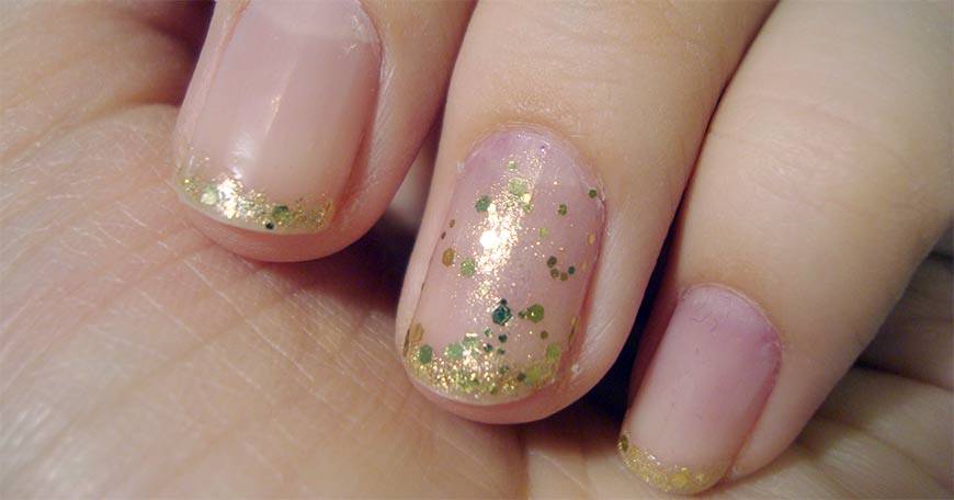 Нужен праздничный дизайн, который можно носить и в обычные дни? Оформите кончик пластины золотым лаком или блестками и наслаждайтесь вниманием окружающих