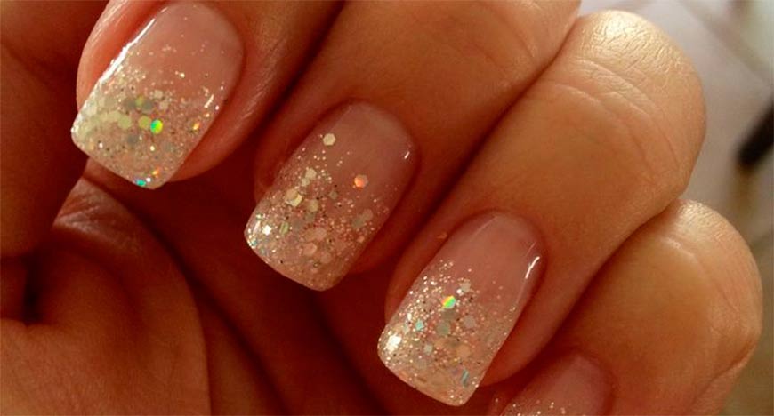 Розовая основа и кончики с блестками добавит образу позитивного настроения.
