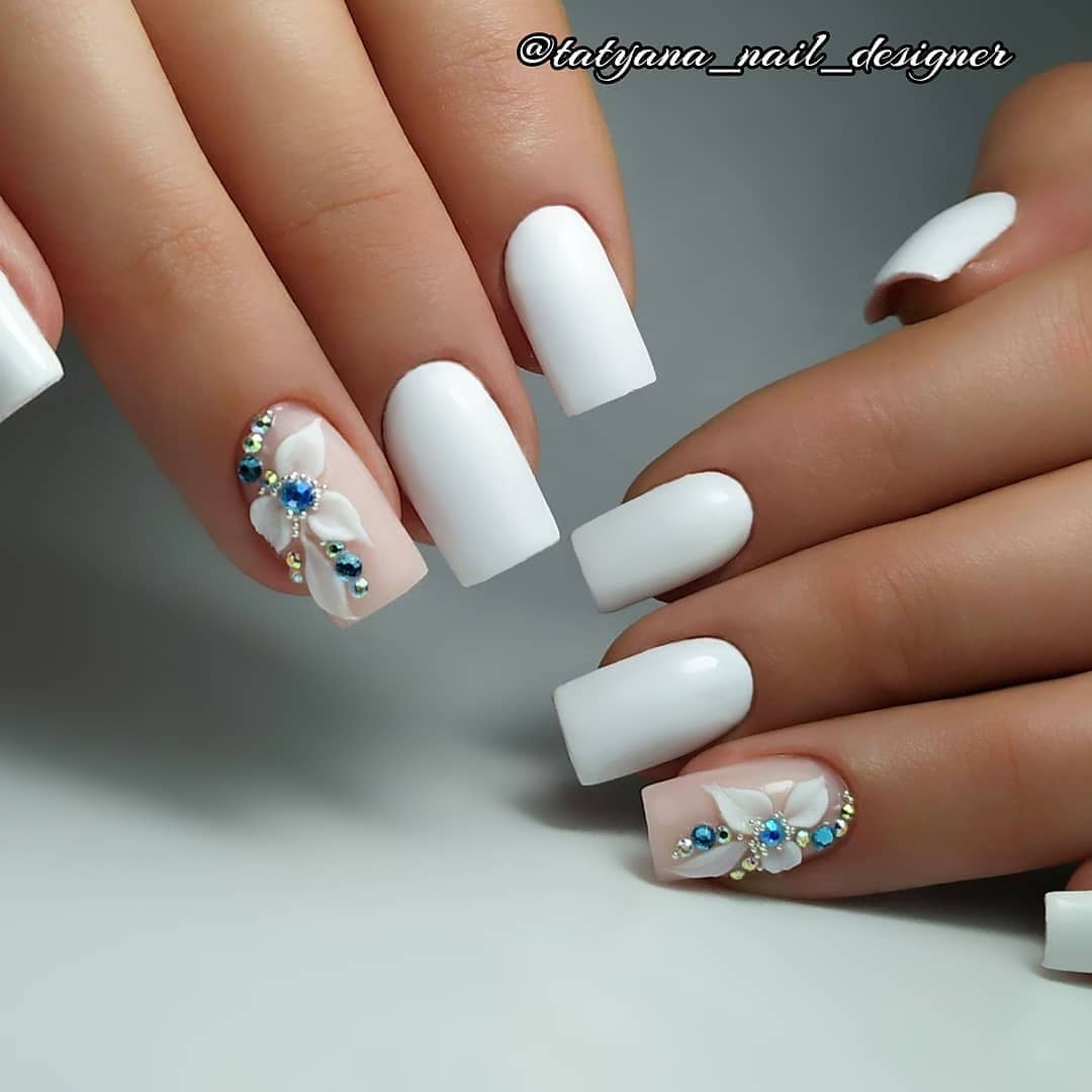 В этом сезоне маникюр для невесты отличается от тенденций прошлого года. Уже не в моде длинные нарощенные ногти с броским декором. Ни в коем случае не наращивайте стилеты.